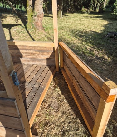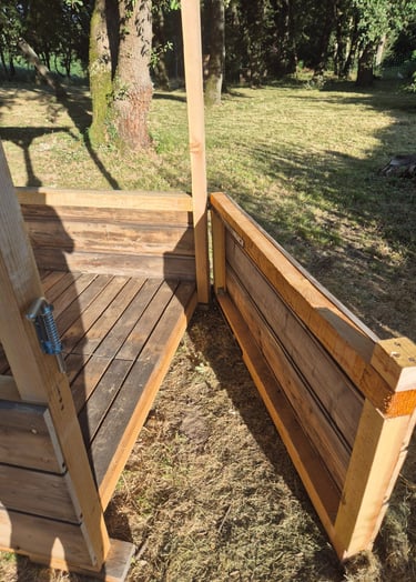 Idéale balles de foin rondes avec porte d'ouverture pour tracteur. Barrière de sécurité adaptée, plancher ultra solide.